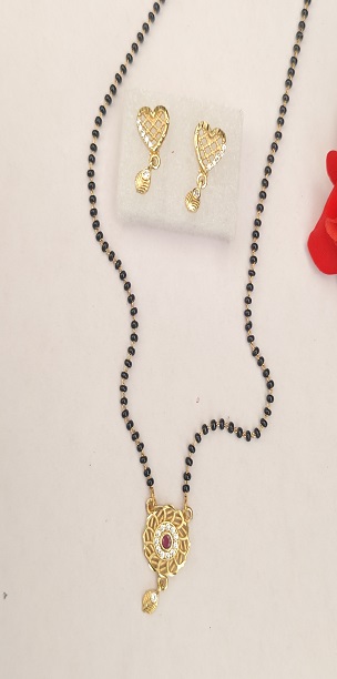 हे साधे, हलके व आकर्षक मंगळसूत्र रोजच्या वापरासाठी उत्तम पर्याय आहे. काळ्या मण्यांची सुंदर रचना आणि सोनसळी डिझाईनचा पेंडंट यामुळे हे मंगळसूत्र गळ्यात अतिशय देखणे दिसते.